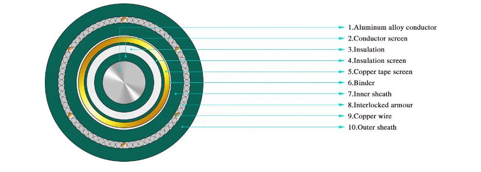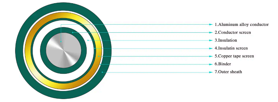 ·Одножильный силовой кабель со стальной проволокой с изоляцией из сшитого полиэтилена для номинального напряжения от 3,6/6 кВ~26/35 кВ